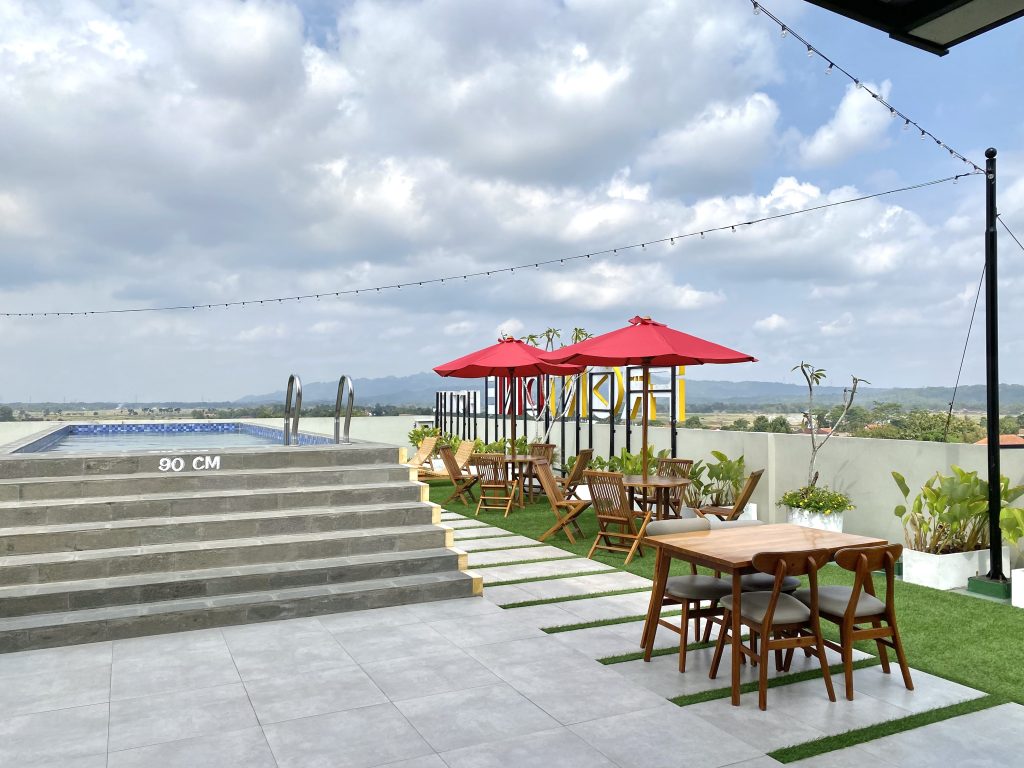 Kolam renang di FRONT ONE HOTEL menawarkan pemandangan di atas hotel dengan pemandangan kota Gombong.